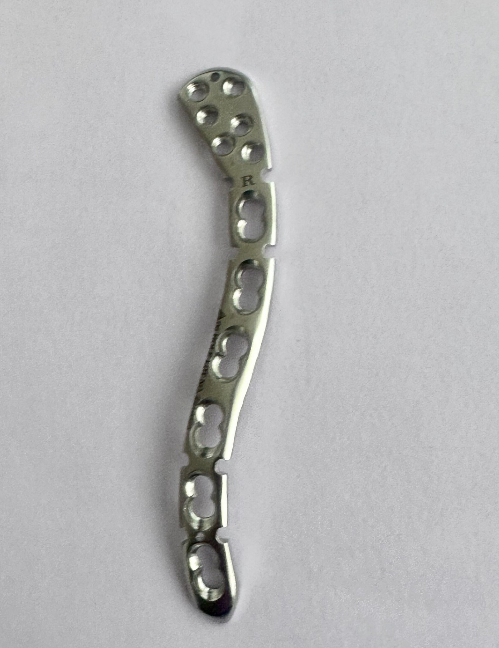 This specialized plate provides stable fixation for midshaft and lateral clavicle fractures. The superior anterior design ensures maximum bone contact, while the lateral extension offers enhanced stability in complex fractures. Its low-profile, contoured shape reduces postoperative discomfort and soft tissue irritation. With locking holes for angular stability and compression slots for precise reduction, this plate ensures reliable fixation and early mobilization.