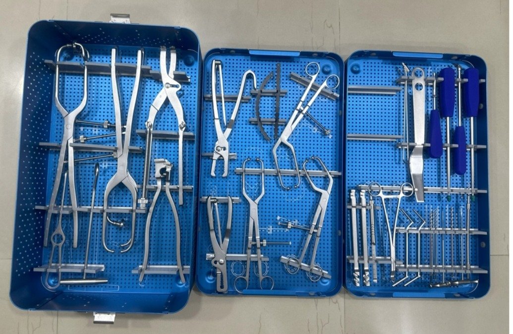 The Pelvic Instrument Set is specifically designed for the fixation of pelvic and acetabular fractures. It includes a comprehensive range of tools such as retractors, screwdrivers, reduction forceps, and drills to support complex pelvic surgeries. Made from surgical-grade stainless steel, the instruments provide durability, reliability, and ease of sterilization. This set is essential for trauma surgeons managing high-energy injuries and complex pelvic fracture reconstructions.