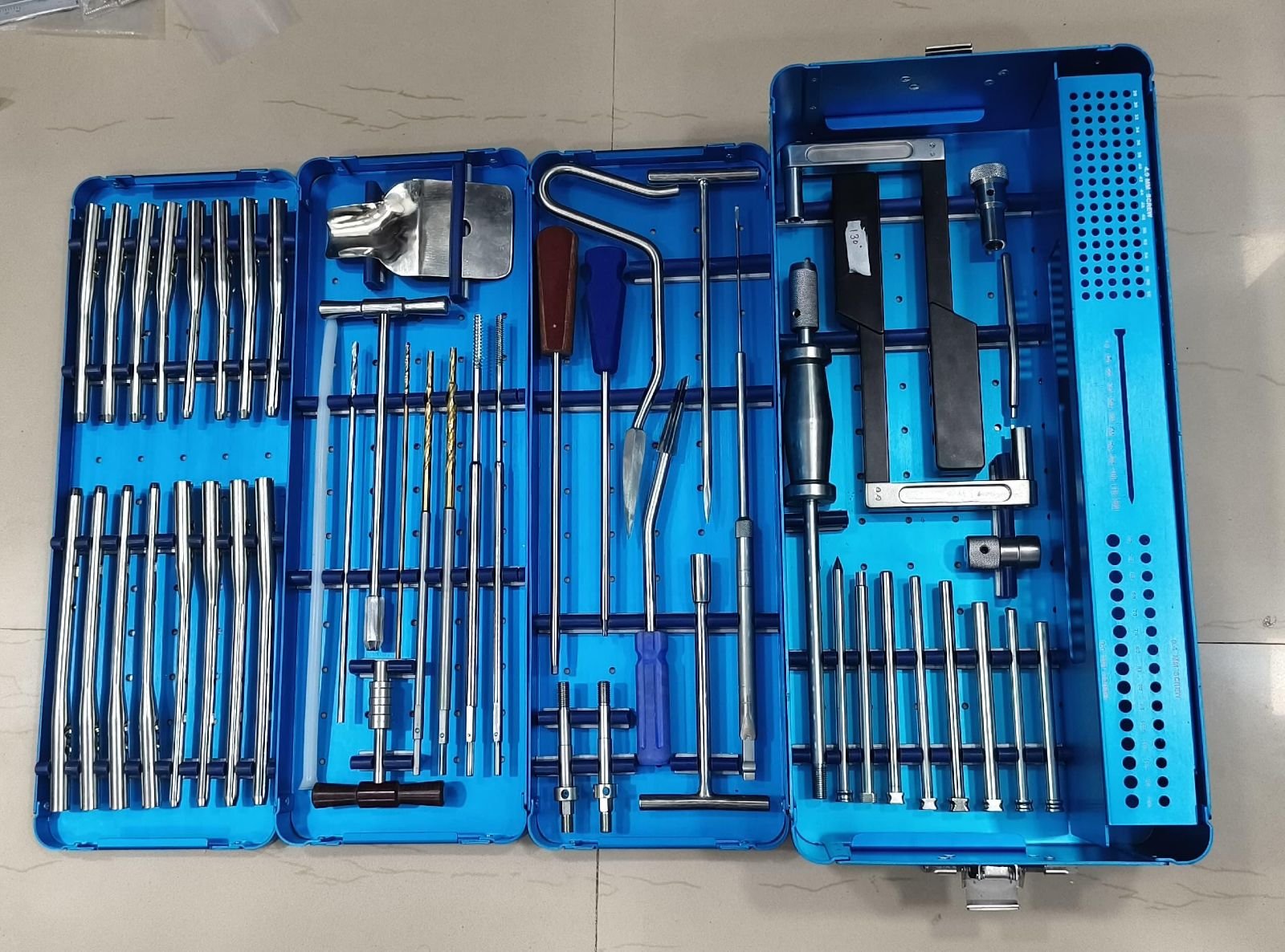 The PFNA-II Instrument Set is designed to complement the PFNA-II implant system. It provides specialized tools such as blade inserters, targeting devices, and reaming equipment for enhanced surgical accuracy. Built for repeated sterilization, it guarantees reliability in high-demand trauma centers.