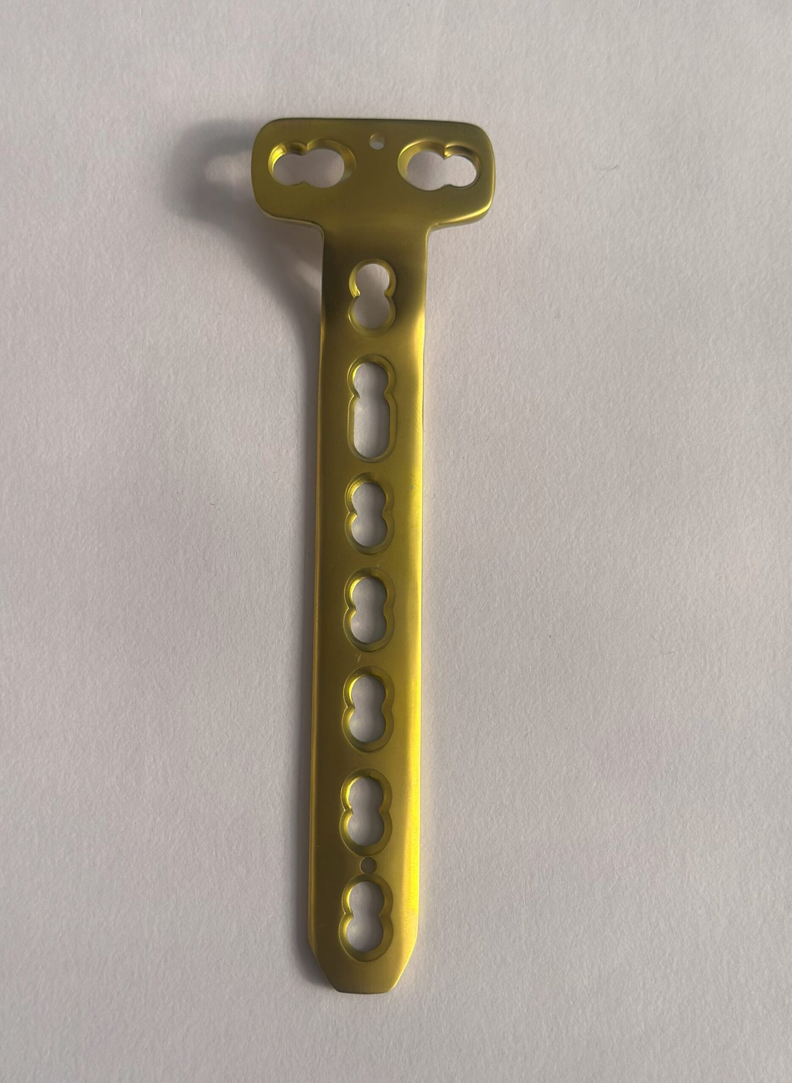 The T-Buttress Locking Plate is used for stabilizing intra-articular and metaphyseal fractures of the distal tibia, distal radius, or humerus. Its T-shaped design provides strong buttress support to prevent collapse at the articular surface. The locking holes offer angular stability, while the dynamic compression slots allow for controlled compression at the fracture site. Its high mechanical strength ensures long-term fixation and early mobilization.